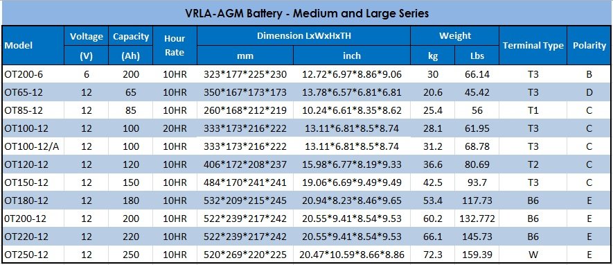 The Absorbed Glass Mat (AGM) battery technology design was invented in 1980, initially for military vehicles and UPS applications to address safety issues, lighten up the weight, and to improve efficiency of operations of the batteries. Inside an AGM battery is an absorbent glass mat that isolates negative from positive plates and this glass mat is consisted of fine glass fibres that absorbs the sulphuric acid, which blocks it from loosely flowing inside the battery thus preventing spill overs. The plates are tightly packed into each cell and put under a great pressure, this pressure allows the battery to have longer lifespan by controlling the discharge of plate material caused by cycling. All AGM type batteries are have a rectangular case which follows the standard specifications approved by the Battery Council International (BCI).